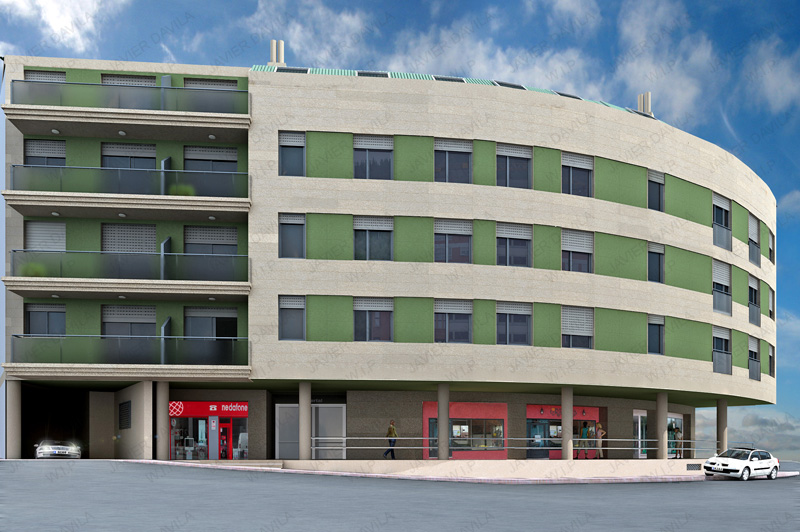 Bueno, esta vez público las imágenes de las dos fachadas de un edificio que me han encargado. Una vez rematada esta primera fase del trabajo apelo a la sapiencia colectiva para que me orientéis en las mejoras que se pueden introducir en el aspecto general de la imagen, de manera que, se mejore el aspecto total de la misma, haciéndolo más real. Gracias.