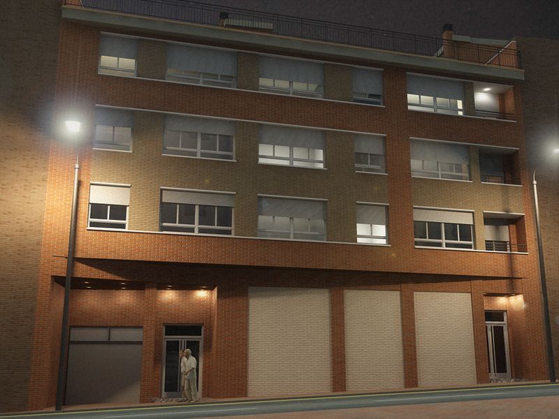 Aquí os dejo mi último trabajo en el que me he animado a realizar un render nocturno, es una casa con 15 viviendas en un pueblo entre dos medianiles y con una calle muy estretchita en la que apenas hay nada. Saludos.