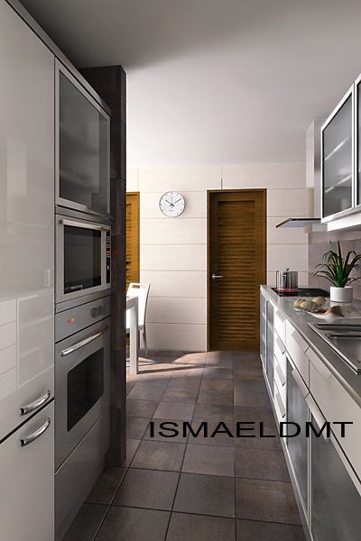 Aquí va otra imagen de la cocina. Aún tengo que renderizar a más resolución las dos imágenes y hacerles un cálculo más fino de la iluminación. Saludos.