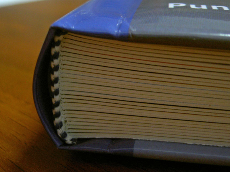 Pues te adjunto algunas fotografías de detalle de la encuadernación. La calidad de la impresión es muy buena, aunque no llega al revelado de fotografía. Yo le daría un 9.5.