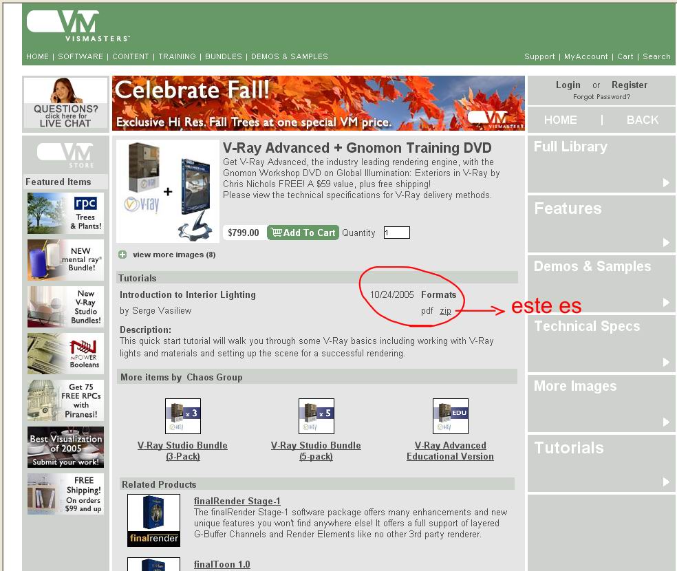 Ok, gracias de todas maneras por prestarme atención, aquí les dejo el enlace. http://commerce, vismasters.com/cata...=vray_tutorial.