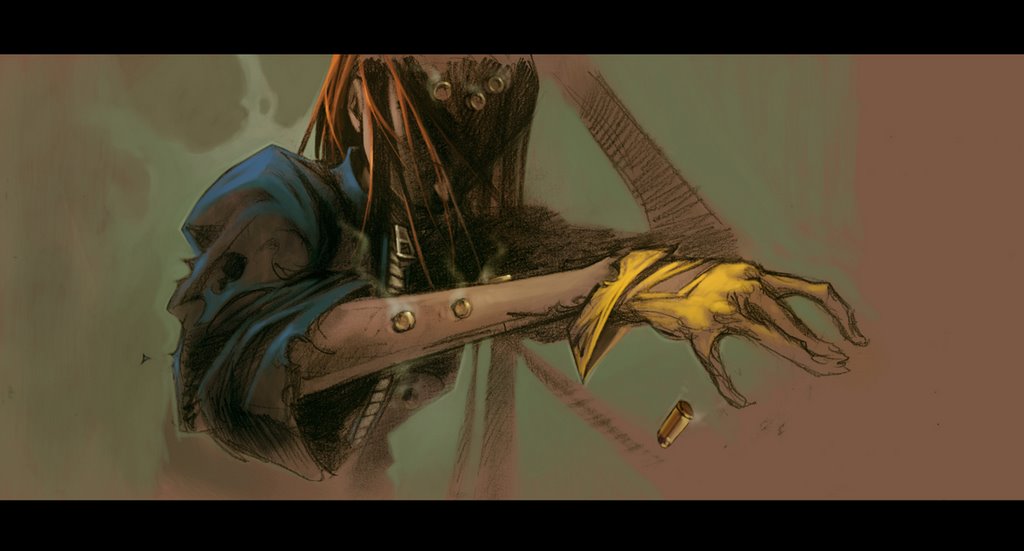 Yo creo que grey y alita me han influenciado mucho por una banda, y Akira, pero es curioso.quien me iba a decir años atrás que me gustaría el manga y el anime, el caso es que me apasiona el cómic, sienkwicz, Mike mignola, Otomo, Bisley, me gustaría hacer un híbrido de todas esas cosas, de echo, lo que me salga, que viene un poco solo.