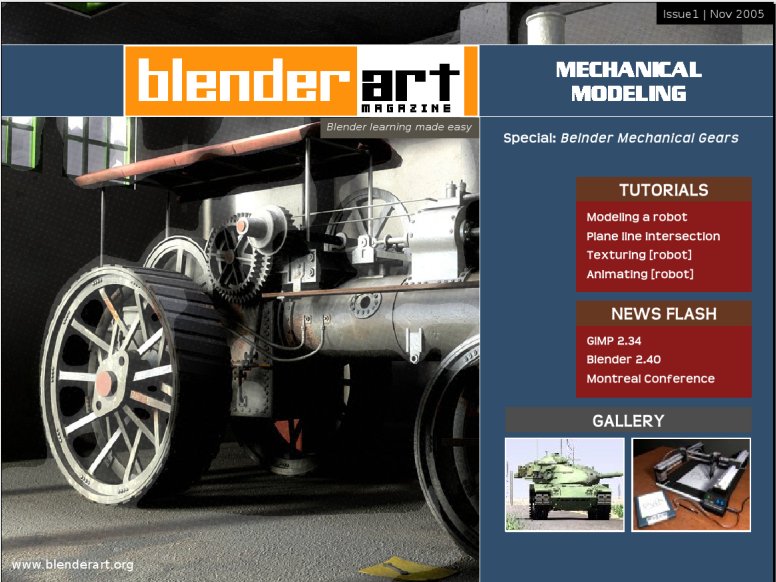 Fantástica publicación sobre Blender. Se trata de un pdf de 42 páginas con imágenes, tutoriales, noticias sobre Blender.