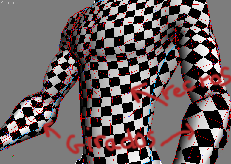 Pregunta: esto está bien mapeado? He hecho un peltmap cogiendo todo el torso y brazos. En las zonas de solape, lógicamente hay problemas, pero lo que quiero saber es si hay algún problema al estar los cuadrados de los brazos en diferente ángulo que los del torso.