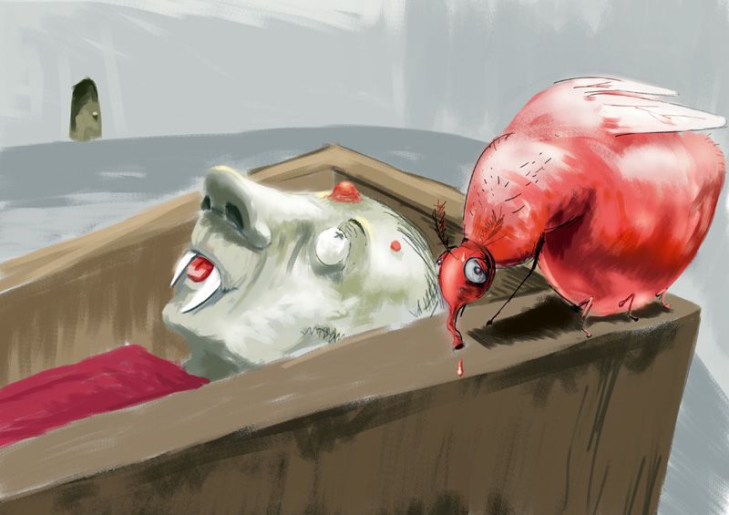 1. Mosquito glotón. Un vampiro y un mosquito, que peligro. Painter y Adobe Photoshop, 1hora y media: