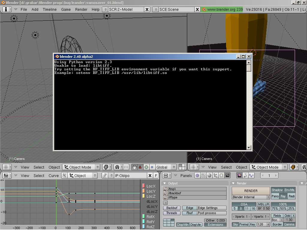 Leander, si quieres pásame el (*.blend) para probarlo en casa y comparar si da el mismo error. Realmente no se me ocurre nada más para poder ayudar