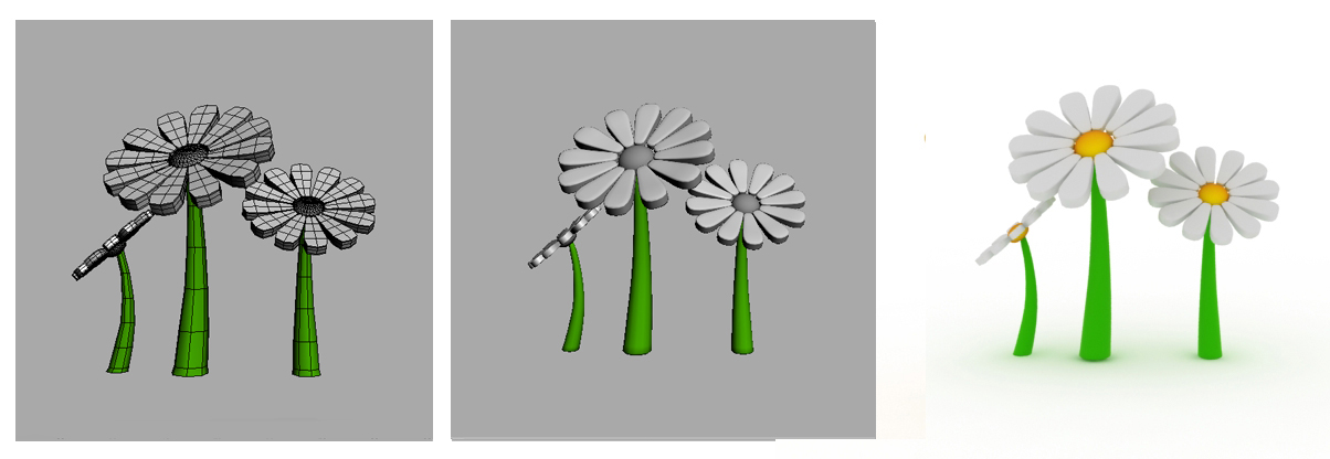 Primero comienzo con el modelado de las flores, estas flores están hechas en 3ds Max 8, con array.
