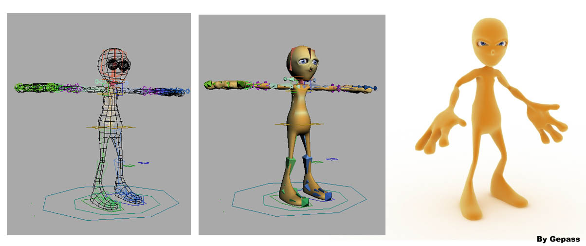Comenzamos con el primer personajes, aquí uso la técnica Edge loop donde voy subdividiendo aristas loop loop. El Rig está hecho con Bones y una prueba de faciales.