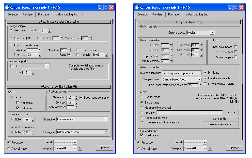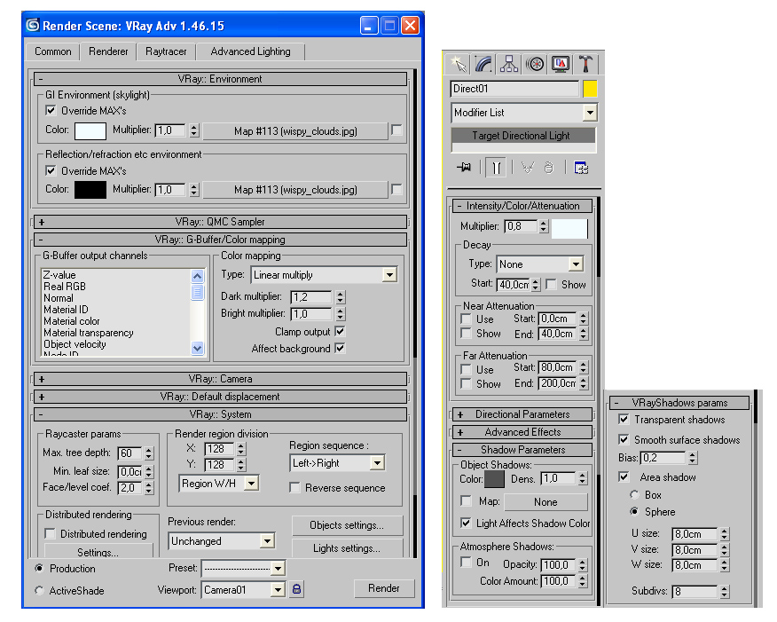 Ok, gracias por la respuesta rápida, uso 3ds Max 7 y Vray, os paso configuración, si falta algo, lo subo lo antes posible. .