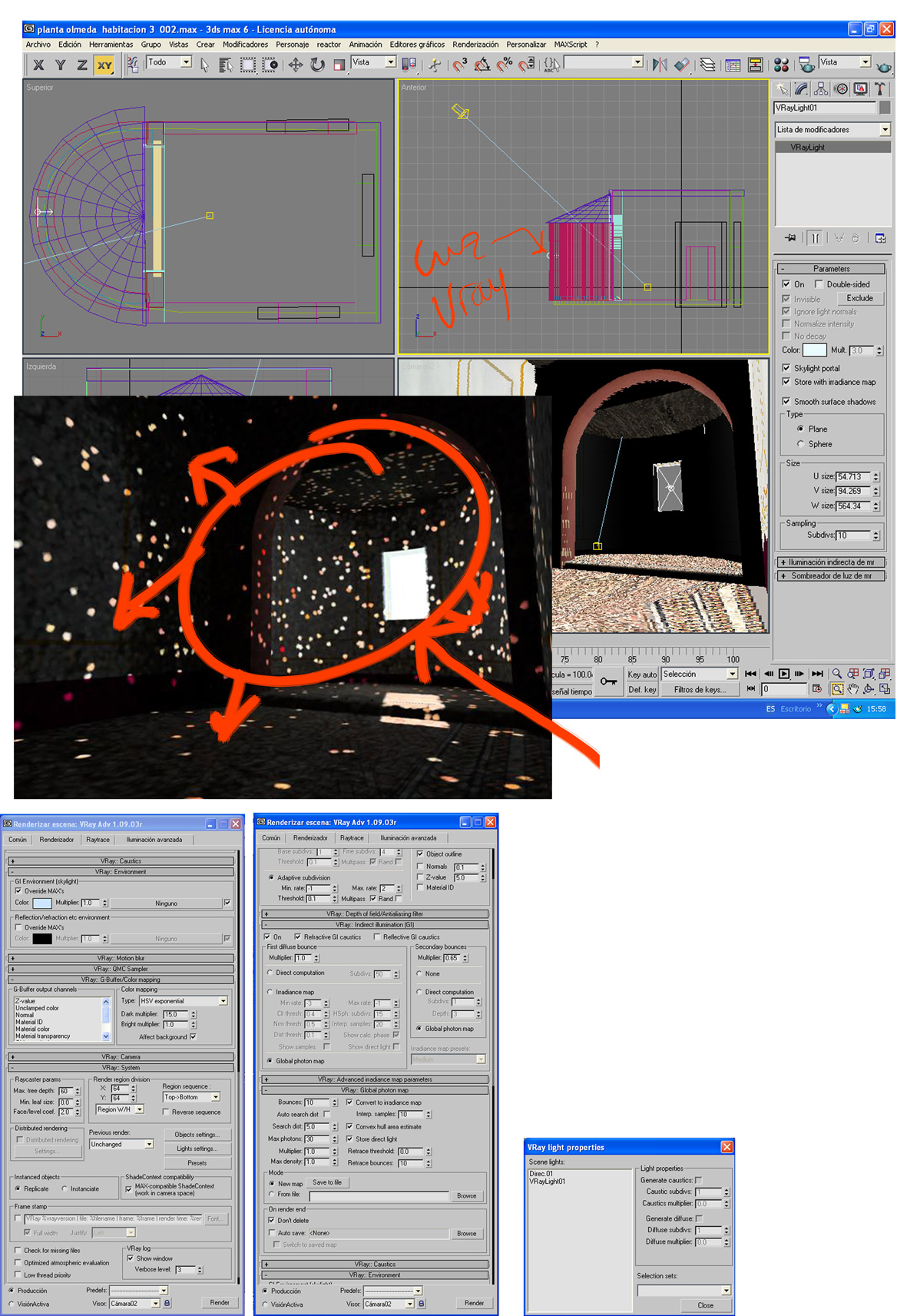 Es más, mirando otra vez la imagen, se me ocurre que lances los fotones por separado, primero de tu direct y después de la Vray, para ver cual de las dos te genera el problema, pero casi seguro que es la direct e insisto que parece también un problema de unidades ¿puede será iluminar algo tan grande con esas dos luces te va a costar un huevo y parte del otro utiliza alguna luz de relleno.