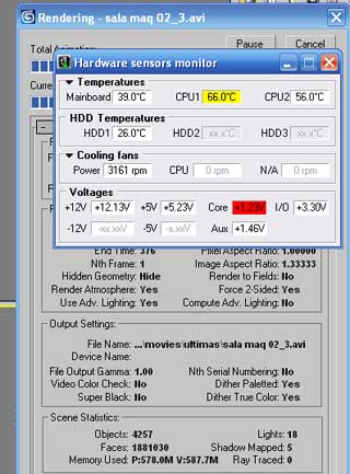 Estuve verificando con un tal hardware sensors monitor el nivel de temperatura, empecé con los renders y superaba los 75º c y el programa se cerro.
