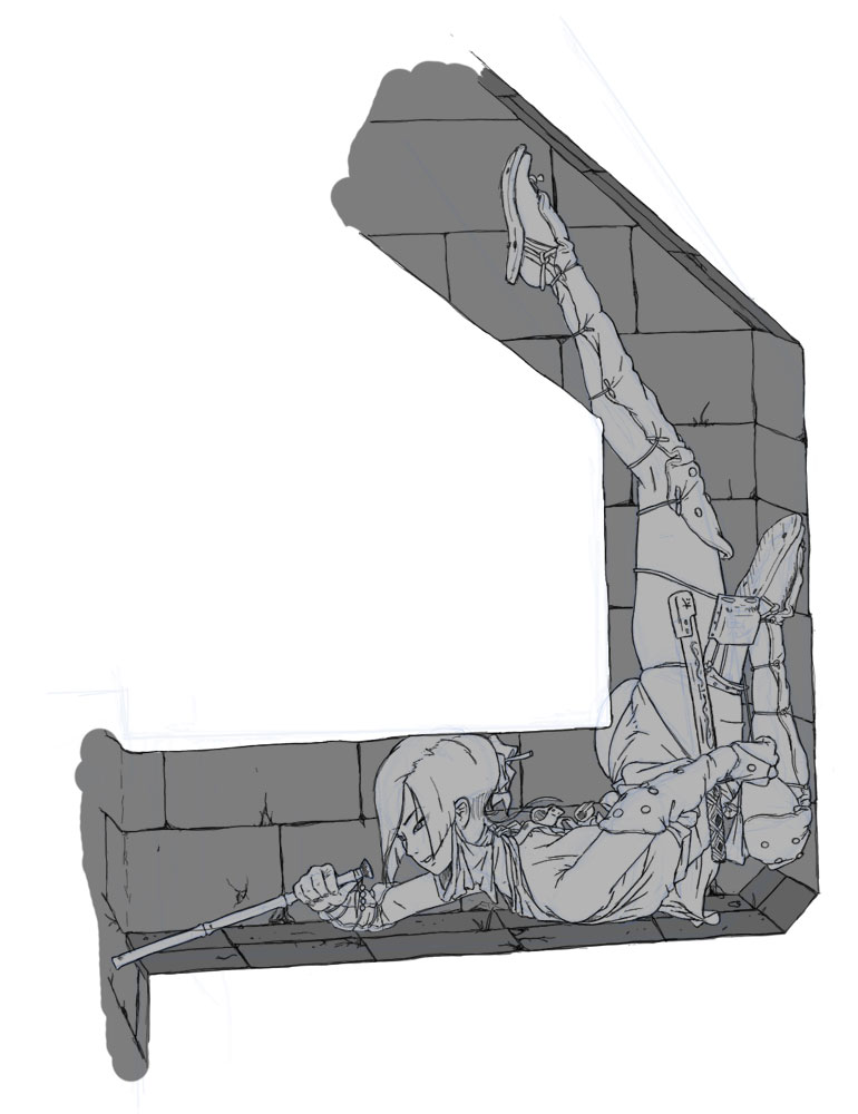 Quel: no sabía que dibujases tan bien. La postura es complicada y la has resuelto muy bien, la mano que coge la cervatana podría estar mejor, pero en general me gusta un montón. Piensas colorearlo?