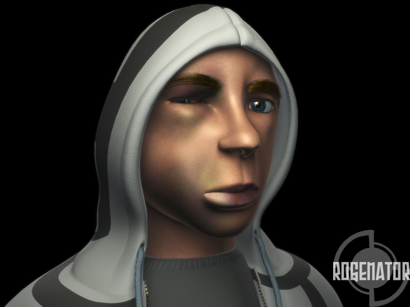La textura de la cara me encanta tío, muy conseguido todo en general, pero tiene algo que hace que me recuerde a un dibujo animado, no sé.
