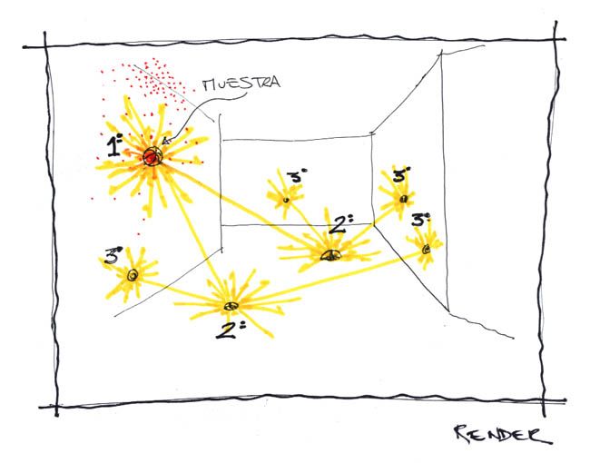 O, tomando el Vray como ejemplo en las superficies en las que choca ese primer rayo inverso se establecen nuevas muestras (todas ellas, ya que, es direct comp) que a su vez proyectan otro número de rayos (subdivs), que significaría si esto es así, el Depth? ¿Y qué ventaja tendrá a partir de ahí hacer un Photon Map?