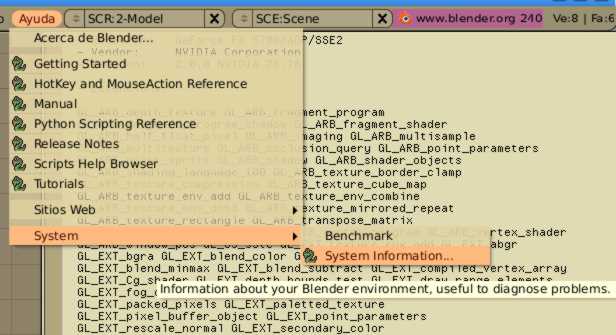 En la ayuda de Blender, opción system información, también se puede ver si la tarjeta gráfica esta funcionado.
