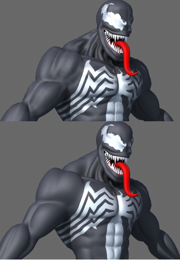 Hola a todos, hace 2 días que empecé a modelar a Venom. De momento solo llevo el torso y los brazos. Como siempre todas las críticas son bienvenidas. Si os parece que no es lo suficientemente grande, si los hombros o el pectoral deberían ser más bastos, etc, lo que os parezca. Un saludo.