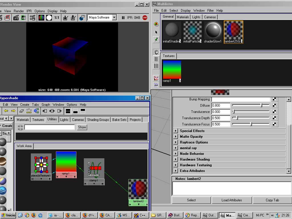Por ejemplo, en Maya si quiero crear un material en el que controle el rango del color de la textura que le estoy aplicando, uso para ello un nodo de utilidades de color, y esto no se me ocurre cómo hacerlo usando solo el editor de materiales. En el ejemplo, hemos cercenado el color verde. (si alguien sabe cómo hacerlo sin usarlo, que me lo diga).