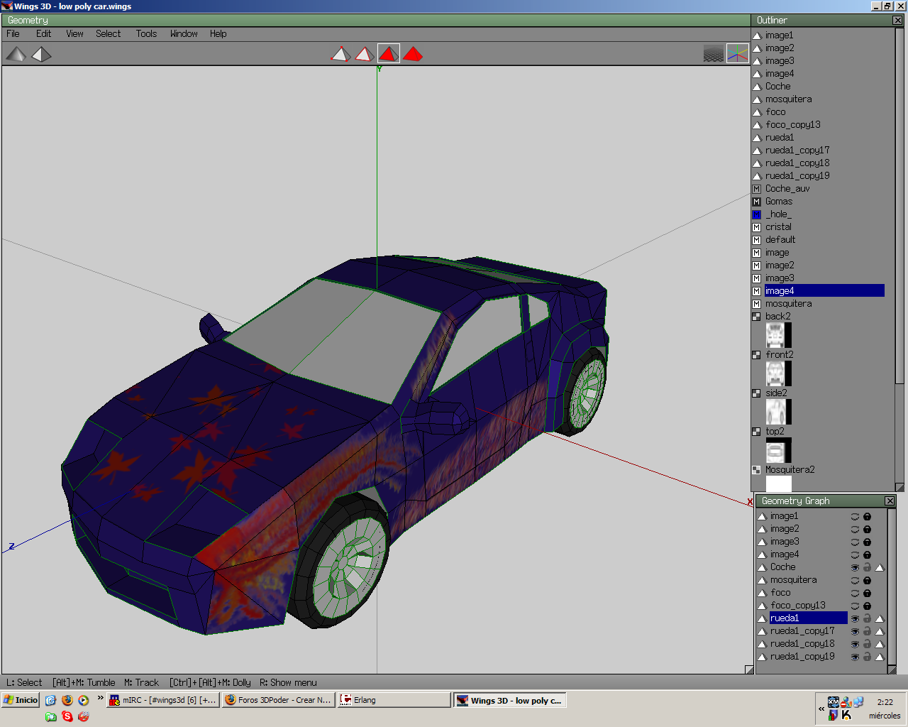 Yo aumentaría considerablemente la Autodesk Maya, ese coche tiene polígonos como dijo alpha, unos 1000, depende de muchas cosas, pero, si va a ser un coche en tercera persona, y algo de tráfico como ned for speed por ejemplo, vamos del tirón yo ampliaria a 4000 tris o más sin problema, no sé si has visto algún modelo de los del GTA en wire, los puedes exportar para el max, y tienen una Maya más compleja que la tuya, (y sino recuerdo mal, por defecto el GTA vice city viene limitado para que haya 30 vehículos al mismo tiempo, y con una GeForce 2 lo he probado y va fluido, y es una tarjeta que, hm).
