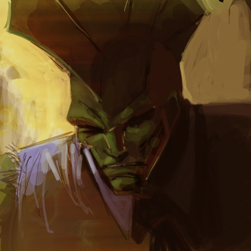 Nada pues, me gusta cómo has usado el color, las siluetas. Como has cortado el borde de atrás con el amrillo. Como usas colores saturados. Como dejas pinceladas más suavizadas, y otras más cortantes. Como detallas en algún sitio más que en otro. Como has simulado la luz y has creado el ambiente en la aparte trasera de la cresta, y como has solucionado el borde delantero de la misma. Te vale así?
