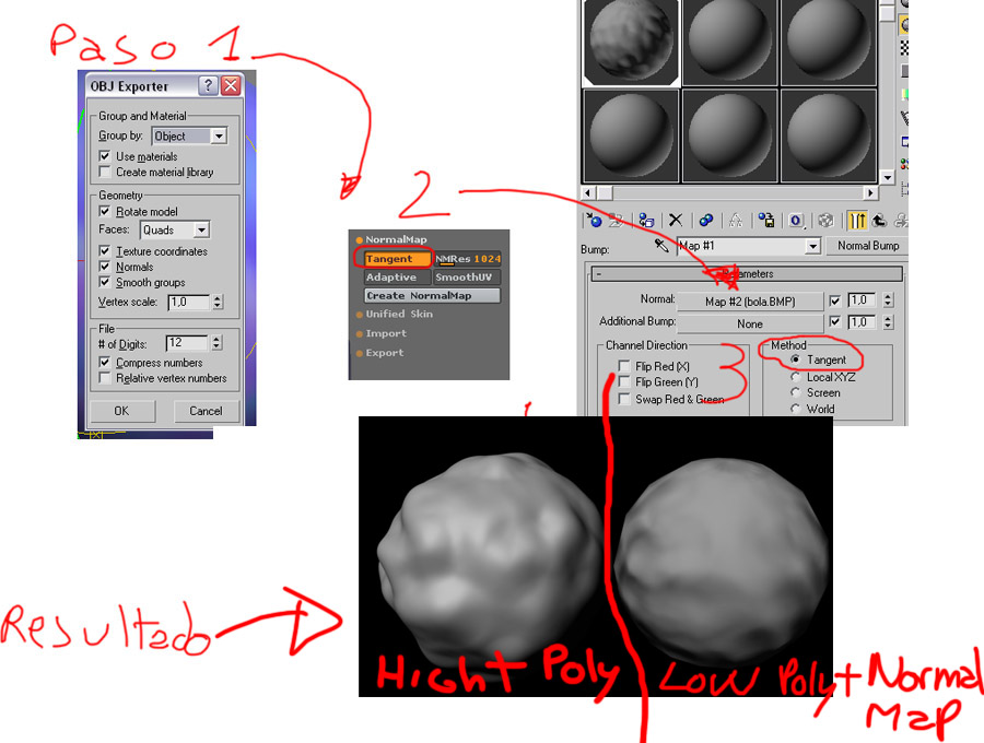 Mi problema es que creo con 3dsMax un Low poly lo mapeo, lo exporto a (*.obj) con los digits a 12 cómo se recomienda, trabajo el modelo y creo un Normal Map tipo Tangent i lo exporto a max en la ranura Normal Bump invierto el mapa -1 i se lo aplico al modelo Low original.
