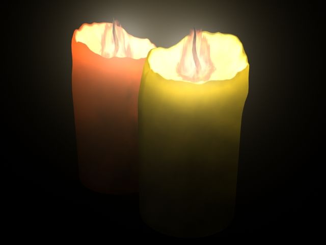 Pues la verdad yo veo algo rara esa vela ¿Usaste el Translucent Shader de 3DS Max 5? Yo la verdad no me he puesto a trabajar con ese material. Alguna vez yo también hice un test, pero con él Final Render.