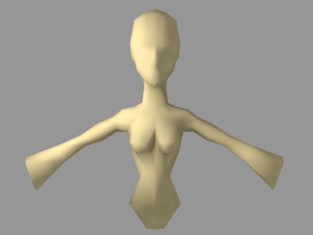 El modelo algo más avanzado. He retocado bastante geometría, aunque apenas se aprecia. No obstante, aún queda mucho por hacer, el contador marca 466 polígonos. Dios, que ignorante Son el doble, (aunque se vean cuadrados, son 466 triángulos en realidad). Ahora empezaré a refinar la malla, meterle un poco más de detalle en el rostro y articulaciones, y luego, a Unwrapear.