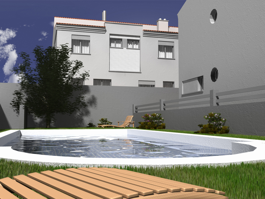 Veo que he triunfado como la coca-cola con mis casas. Bueno, he mejorado (creo) un poco el agua en la vista de la piscina. No sé qué pasa, pero el árbol me sale muy oscuro. He probado incluso a ponerle una luz debajo, pero se me queda así. Si alguien me da un consejo.