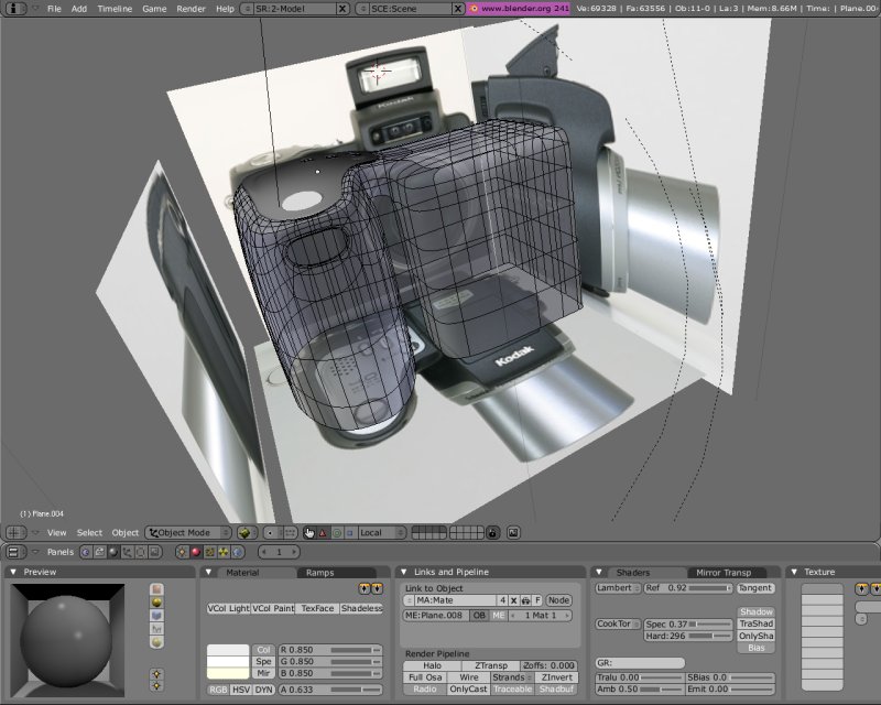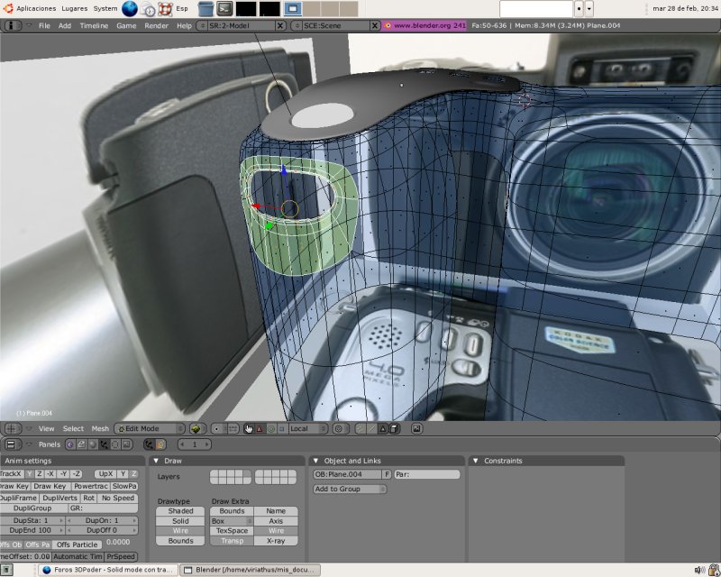 Activando el trans y wire. Las imágenes de referencia las tengo sobre 4 planos texturizados.