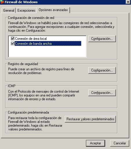 Les cuento que mi compañero que tiene en buen estado el firewall tiene una conexión que yo no tengo. La conexión de banda ancha.