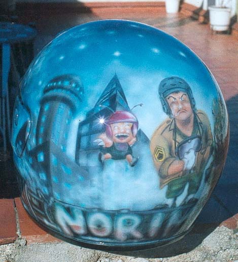 Hola a todos. Este casco hace mucho que lo pinte, fue un encargo y los personajes me los pasaron tal cual pero en fotocopia.