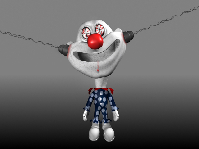 En este mundo de los payasos al que no quiere reír le hacen reír a la fuerza. Modelado en max7 render con el default Scanline.