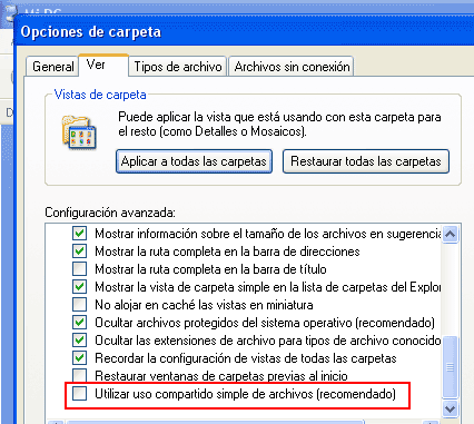 Es eso seguro, ¿cómo se resuelve? En XP. Posdata: en las propiedades de una carpeta compartida me sale lo siguiente.Cita: