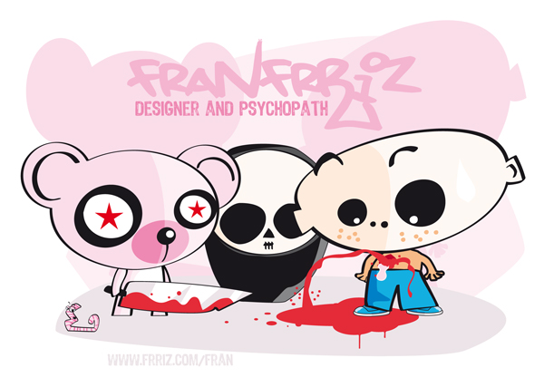 Muy chulo el dibujo, y el título me encanta. Sí me podría pillar una camiseta negra con él, pero una blanca no, demasiado rosa. Para chicas si que quedaría bien, osos, colores rosa y psicópatas.