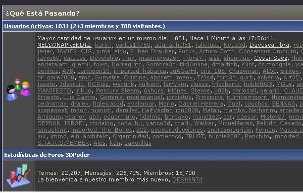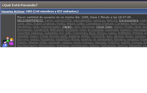 La cosa se atascó, será porque algún tema haya pasado a mejor vida? Mayor cantidad de usuarios en un mismo día: 1254, hace 4 días a las 20:43:10.