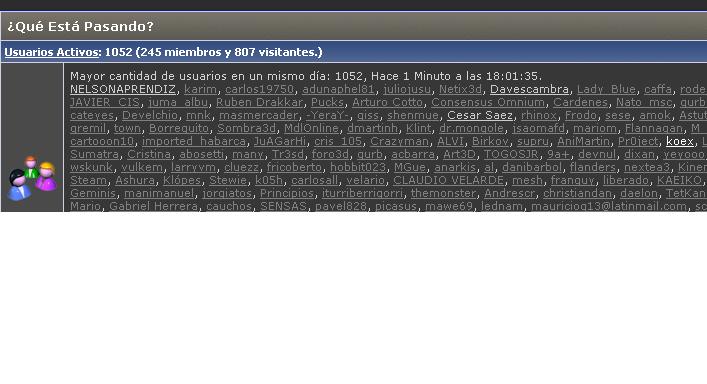 Mayor cantidad de usuarios en un mismo día: 1116, hace 1 minuto a las 19:17:18. Esto es ¿verdad? Es el efecto razinger? Son las amigas de Pit? Es un sploit de jager?