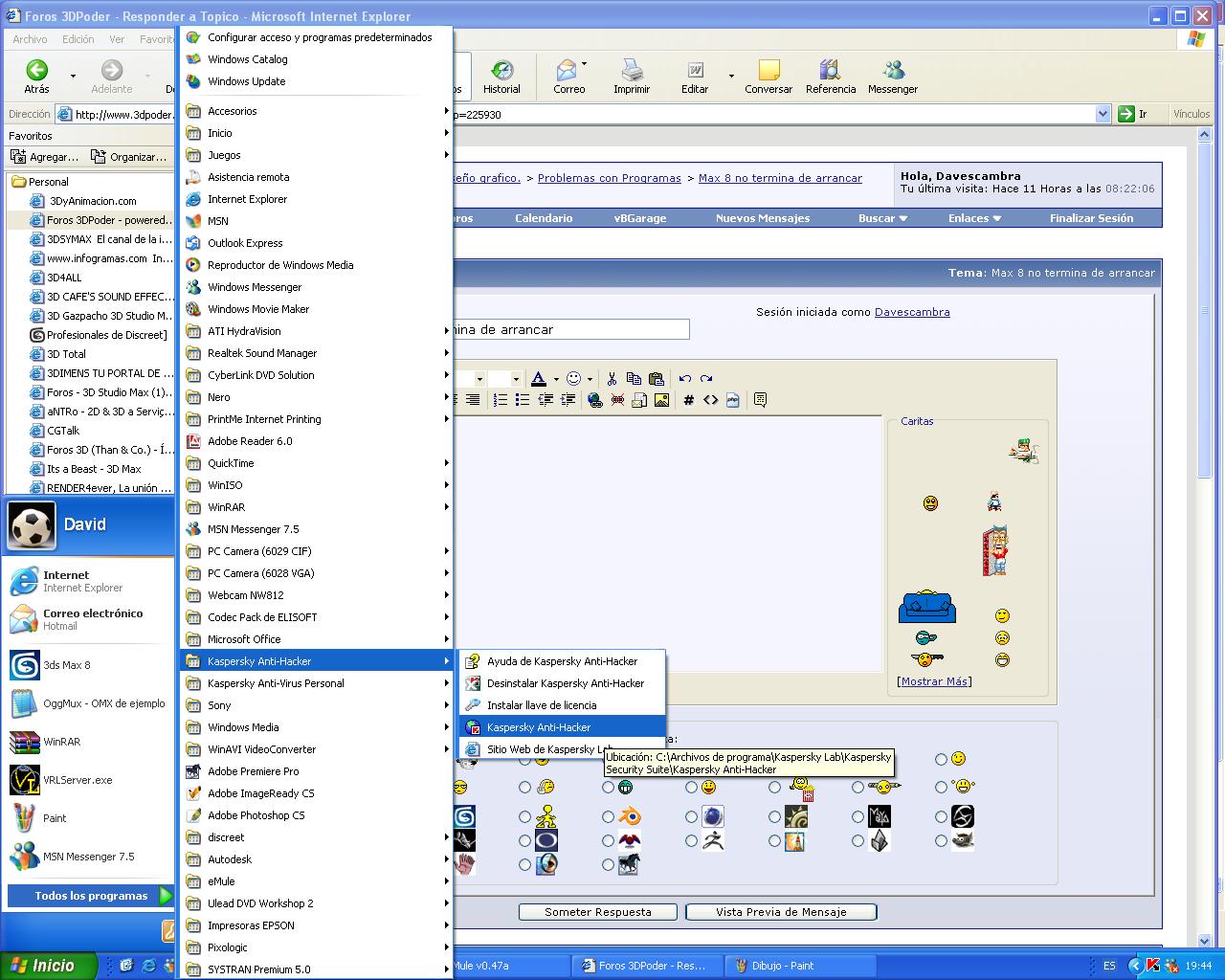 Hola. Mi 3dsMax 8 no quiere arrancar. Hasta ayer funcionaba perfectamente, pero hoy comienza a arrancar y de repente, finaliza la carga, sin que llegue a cargarse entero.