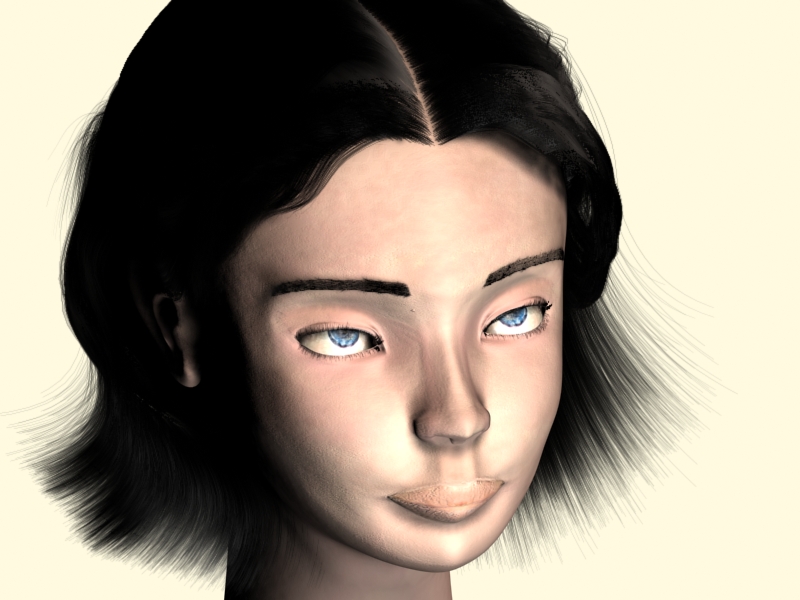 Saludos. Pues para llevar tan poco tiempo en esto, el camino es bueno, no te desanimes, la verdad es que ya tienes consejos estupendos para que la cosa siga por buen camino, la verdad es que Juan tiene razón, no deberías apresurarte con lo del pelo las texturas y los ojos, dedica tiempo a mirar caras sin prisa sobre todo femeninas y con alguna que tomes de referencia, pues a mover vértices tranquilamente y ver cómo se comporta la malla, pero ánimo que la cosa pinta bien y la práctica hace mucho, para el tema de los ojos, la córnea tiene una refracción de 1.333 si no recuerdo mal, si me equivocó que alguien me corrija por favor, y una mapa de bump para el iris también ayuda, y por supuesto la buena elección del mapa de reflejos que elijas para la córnea.