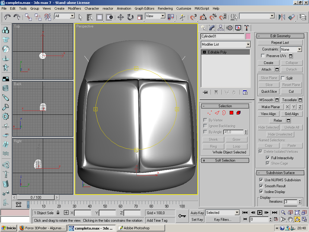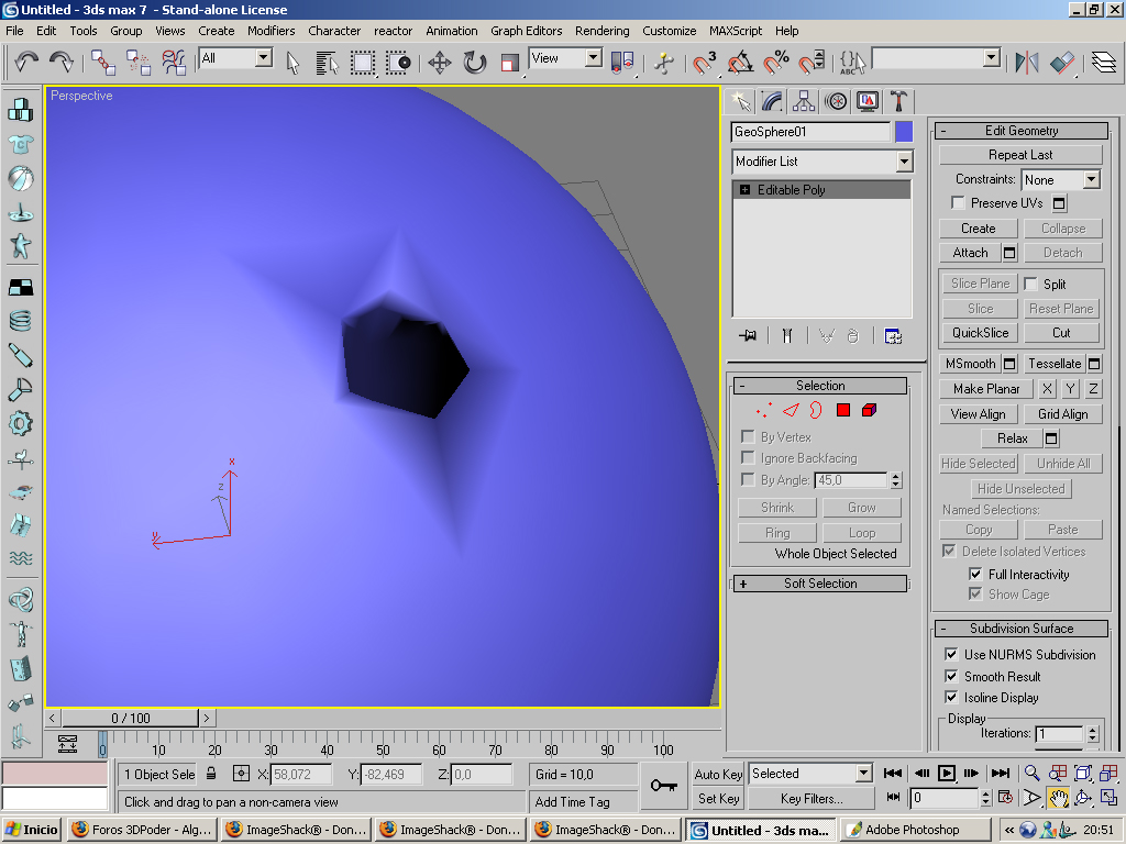 En vez de surcos queda esta basura. Vamos con la bola: cojo una geosfera y le hago un bolean con un cilindro para hacer un agujero lo suavizo y queda esto: Archivo adjunto 154246