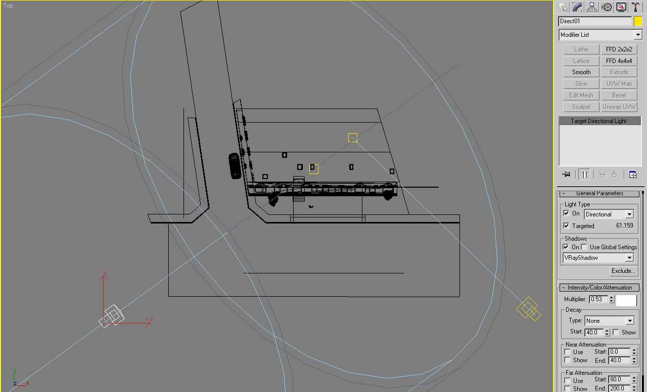 La iluminación no es muy acertada, el edificio parece plano, hay un ángulo de 90 grados entre las 2 fachadas y reciben la misma iluminación, deberías cambiar la posición del sol para moldear mejor las sombras.