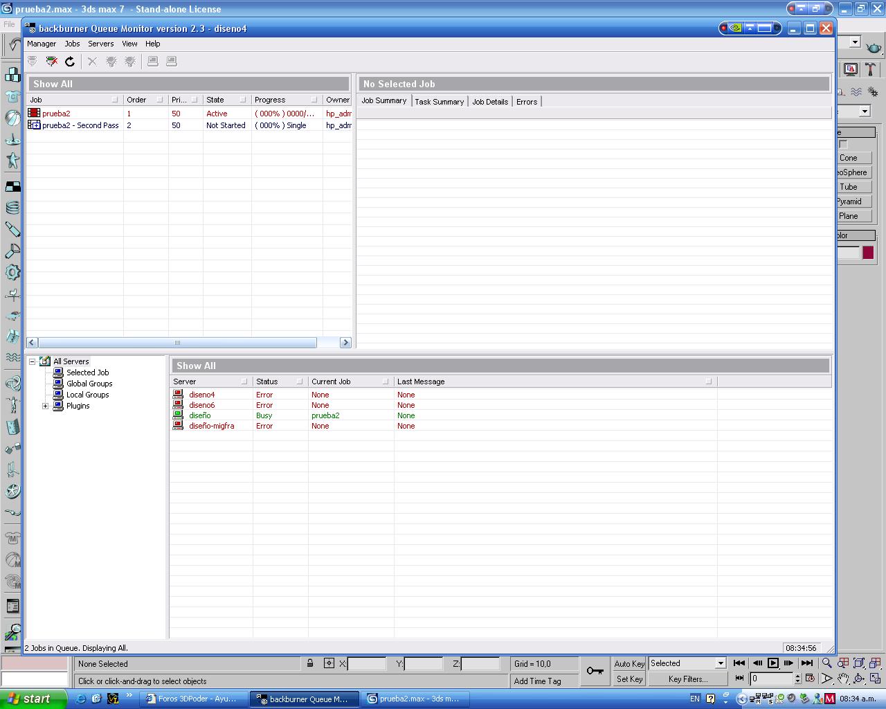 Bueno aquí dejo unas imágenes de lo que está sucediendo en mis pruebas de RenderFarm, espero esto me ayude a ser más claro en lo que corresponde a mi necesidad, nuevamente gracias por su ayuda.