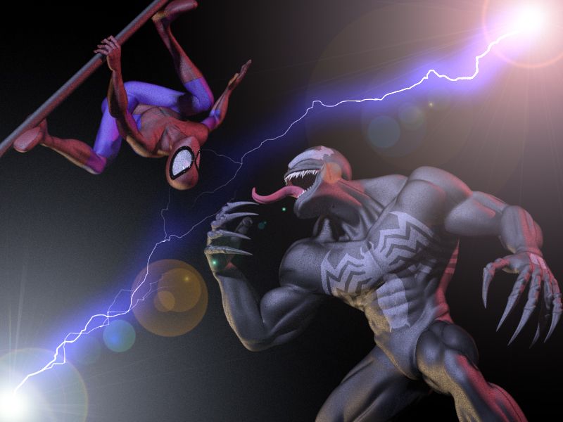 Buenas, os pongo un primer render cutre de un Spiderman vs Venom. Voy a ver si consigo ir poniendo de vez en cuando más renders de los 2 personajes. Esto es solo una primera prueba, me he pasado un poco con los rayos y los focos, están con After Effects y renderizado con Maxwell, lo cual es una putada por un lado, porque no renderiza los Normal Maps, así que, se han perdido muchísimos detalles de musculatura en Venom (con lo que me había costado hacer las venas.) y de Spiderman. Cuando este la siguiente versión de Maxwell espero que estén funcionales los mapas de normales, el próximo render está más currado. Anda y trataré también de incluir el Daredevil que me pasaste Dani, si arreglo de la importación(que me daba un problema de escalado)