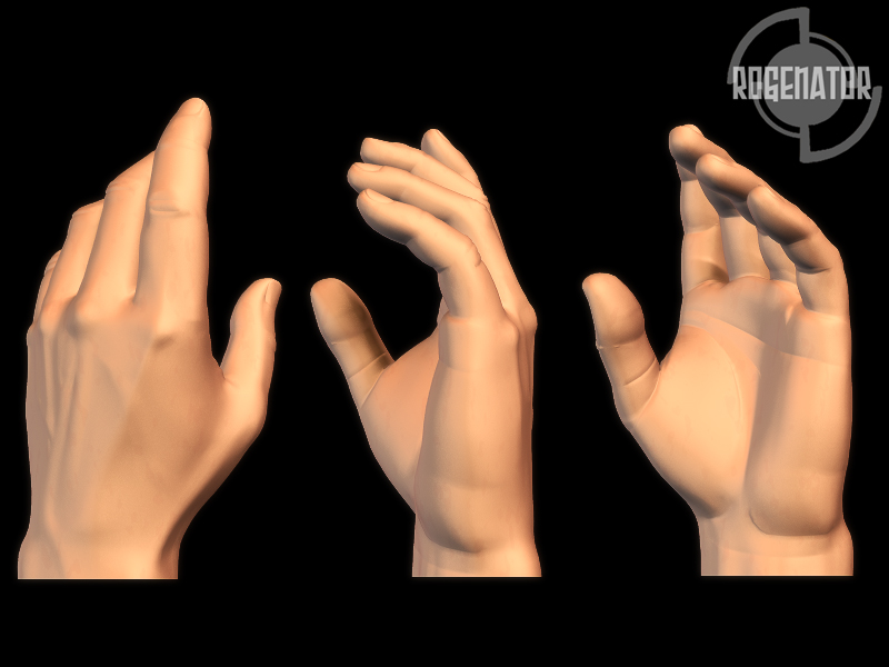 Ahora que lo has editado con ZBrush, deberías retocarla de nuevo en Blender para corregir algunas deformidades: el canto del lado del meñique sobresale mucho, en general se ve ancha en proporción a los dedos, y.