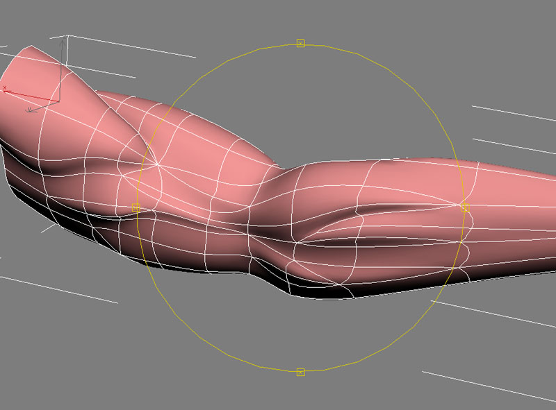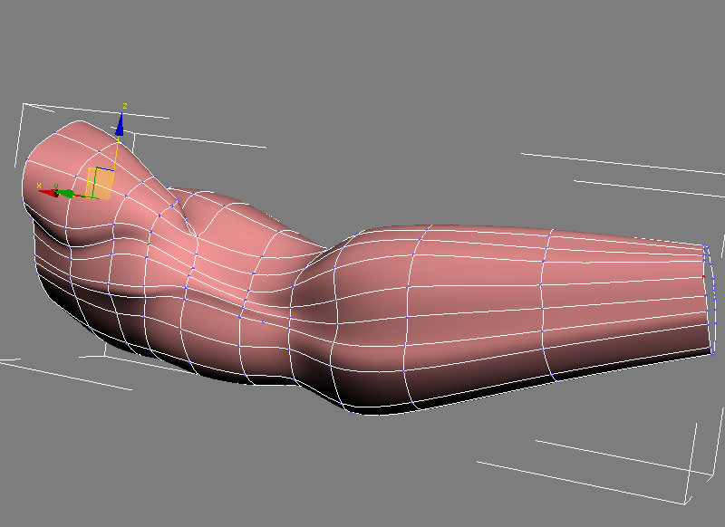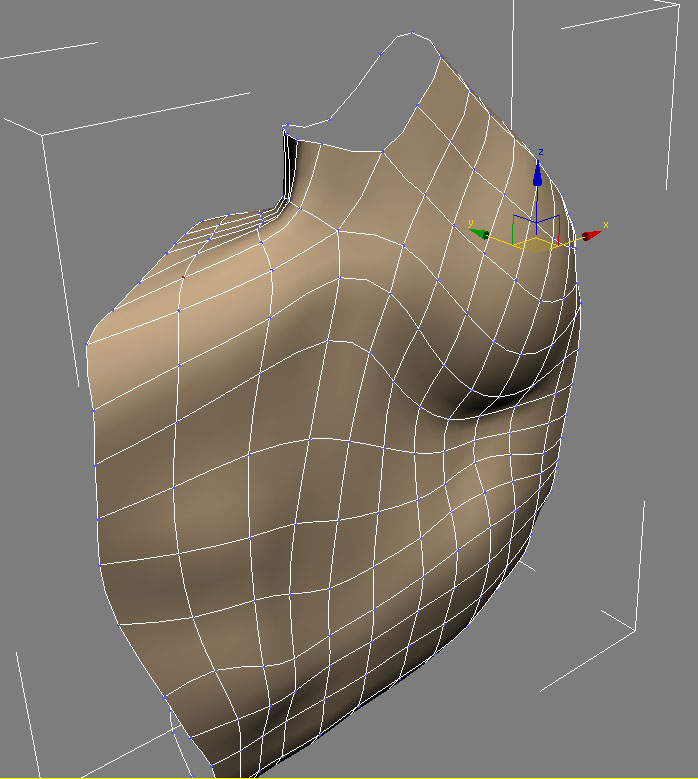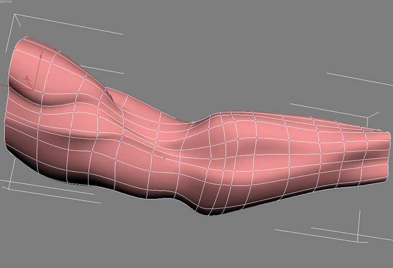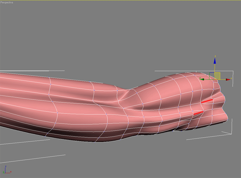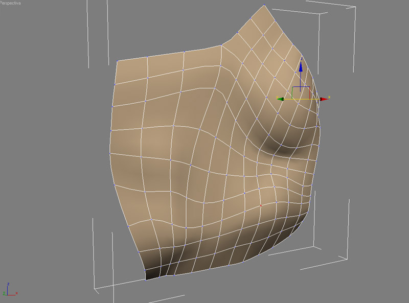 Lo he empezado a partir de un plano y he ido añadiendo aristas en los pliegues y comienzos de músculos.