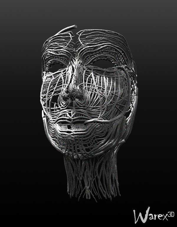 Pues eso es IkerClon, vaya, que no estoy violando los derechos de autor ni nada de eso, simplemente quise crear algo parecido, pero con 3dsmax. Claro, yo sé que es un artista y he dicho que ha de ser un loco, pero, por modelar tanta curva Nurbs porque tengo entendido que lo ha hecho en Maya o quizás uso el Paint effects o ha proyectado nurbs, que se yo porque en la web no menciona la técnica, y si IkerClon no es nada complejo, pero a mí se me ha ocurrido hasta que me baje el advanced Painter que está muy bueno por cierto, usando el espagueti voila, posdata: que no sé entere este chaval que he intentado recrear su técnica porque me manda a matar.