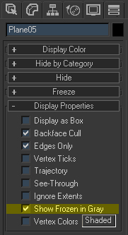 Otro inconveniente que reportan los usuarios es que es bastante difícil modelar sin seleccionar accidentalmente los blueprints, y se congelan los blueprints, se deja de ver la textura que le hemos puesto, aunque le hayamos puesto que se muestren en el viewport. Esto se soluciona de una manera bastante simple: en el panel display (donde congelas y escondes) hay una opción (resaltada en la siguiente fotografía) que te permite seguir mostrando la textura de los objetos, aunque estén congelados. Estas dos técnicas combinadas proporcianan un enorme control al momento de modelar, y así te ahorras la preocupación de seleccionar sin querer tus preciados blueprints que tanto te costó alinear.