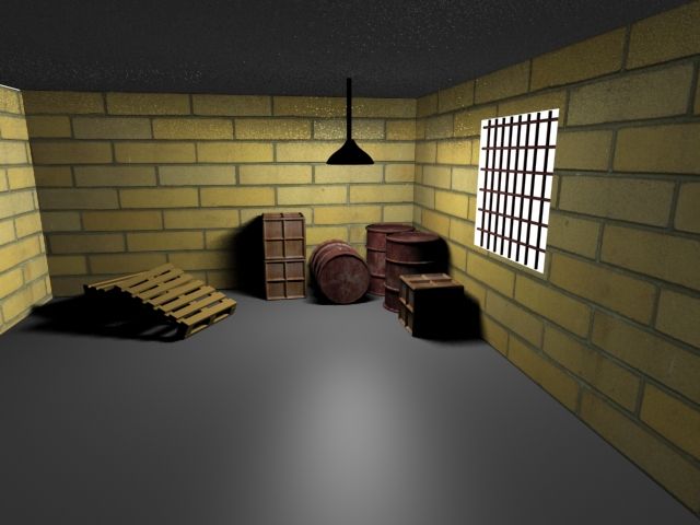 El suelo que está es muy limpio, y los ladrillos de la pared son enormes. La reja parece que flota, la lámpara muy baja, da la impresión de ser una habitación (de altura).