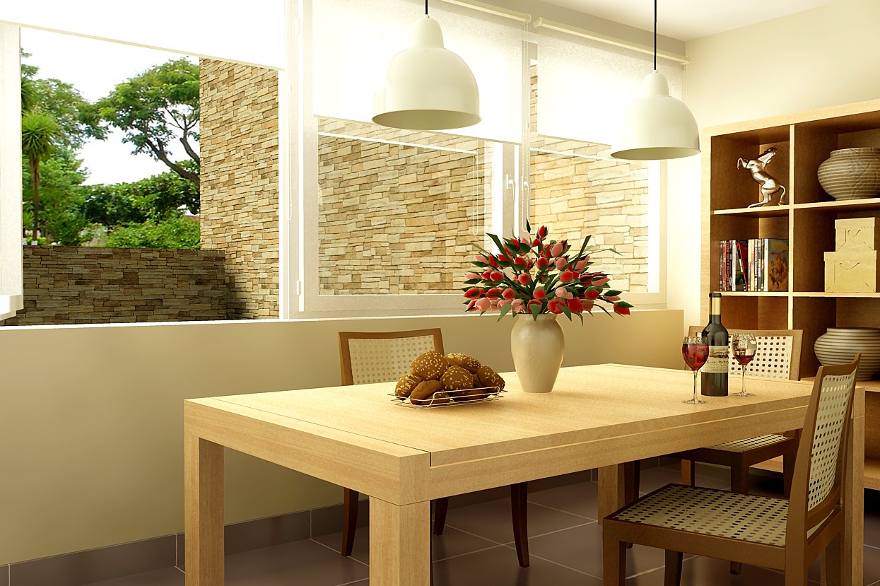 Si el interior sale así de luminoso, el exterior debería estar totalmente quemado, sobre todo si tenemos en cuenta que no hay luz directa y toda la escena se ilumina con luz difusa. Por lo demás muy bien.