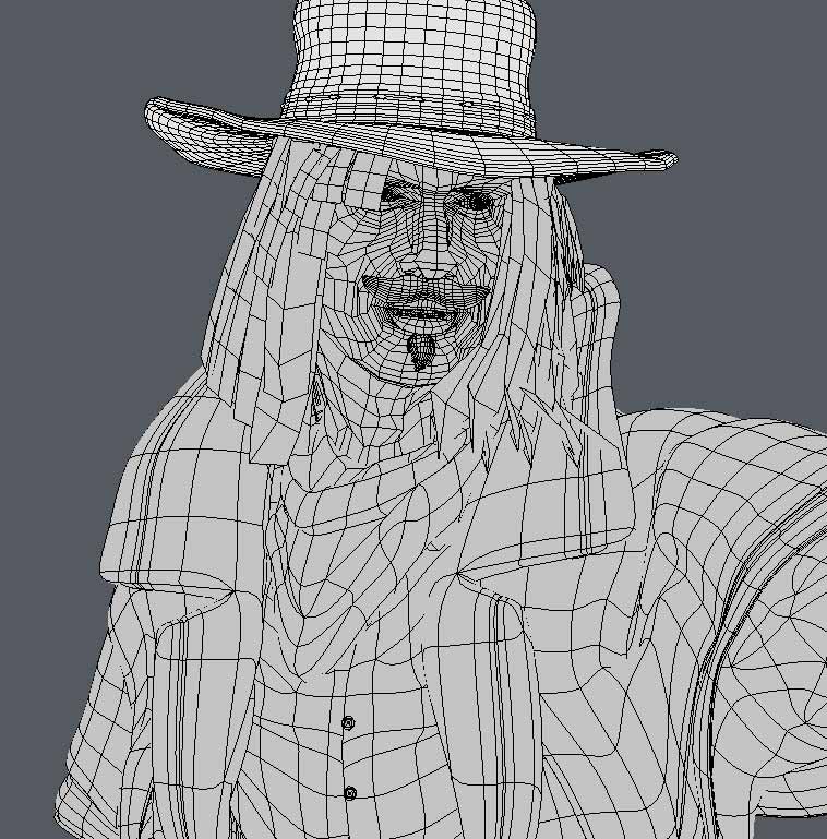 Buenos días, gracias por vuestras respuestas, tetakaneda subo un wireframe más cercano de la cabeza, a noche empecé a tocar la iluminación espero que para mañana pueda mostraros algún avance. Un saludo.