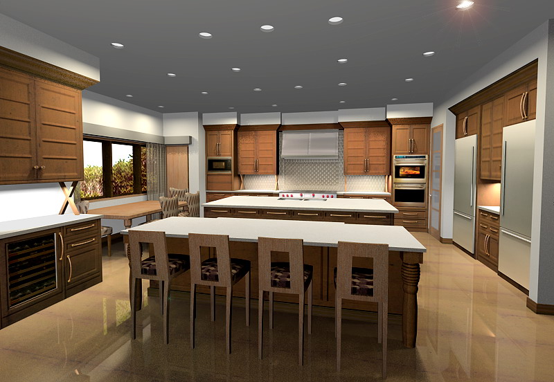 Me parecen buenos los modelos. La iluminación del segundo está bien, y los materiales igual. Quizá lo que ya ha dicho del reflejo, pero ya está. Luego en cuestión de gustos, la cocina me parece extremadamente gigante, con tantas mesas para comer, y tanto espacio que se puede aprovechar para otro tipo de sala, no es una crítica al modelo, es simplemente una cuestión de gustos. Por cierto, que es esa x que hay en la encimera? Parece como si sujetase los muebles superiores de la cocina. Saludos.