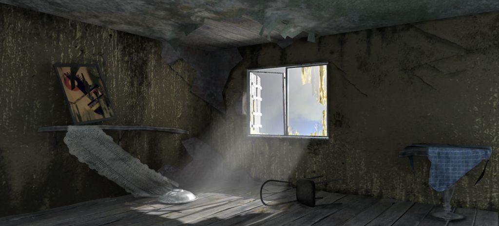 El interior, pues bueno. Confiesa que no es difícil hacer un interior con esa iluminación intenta simular motas de polvo iluminado, en vez de tanto halo.